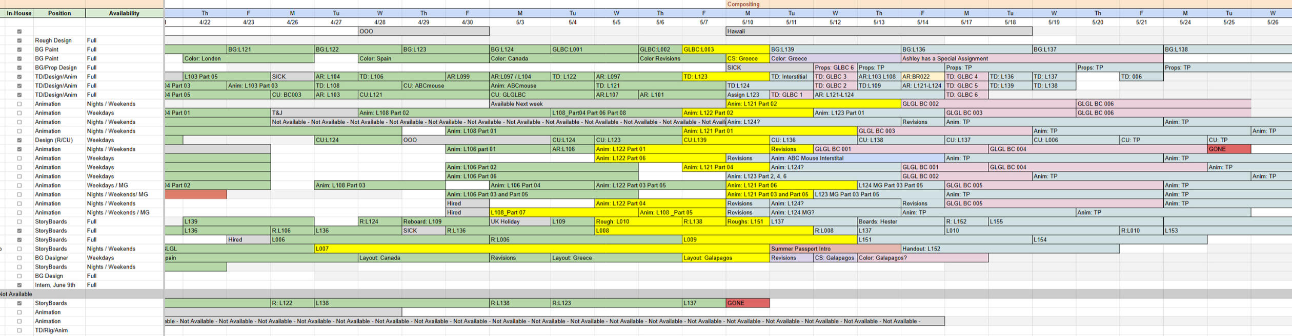17 years experience in television animation and feature film production. Strong working knowledge of storytelling, development, design, talent records, animation, compositing, editorial, and back-end post-production. I am a trusted team leader with strong communication skills with both internal and external partners. Proactive in anticipating, identifying, and addressing issues while maintaining a positive attitude within a professional, fast-paced, constantly changing environment.